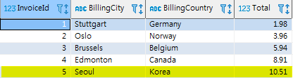 INSERT INTO Invoice_INSERT VALUES (5, 'Seoul', 'Korea', 10.51)
