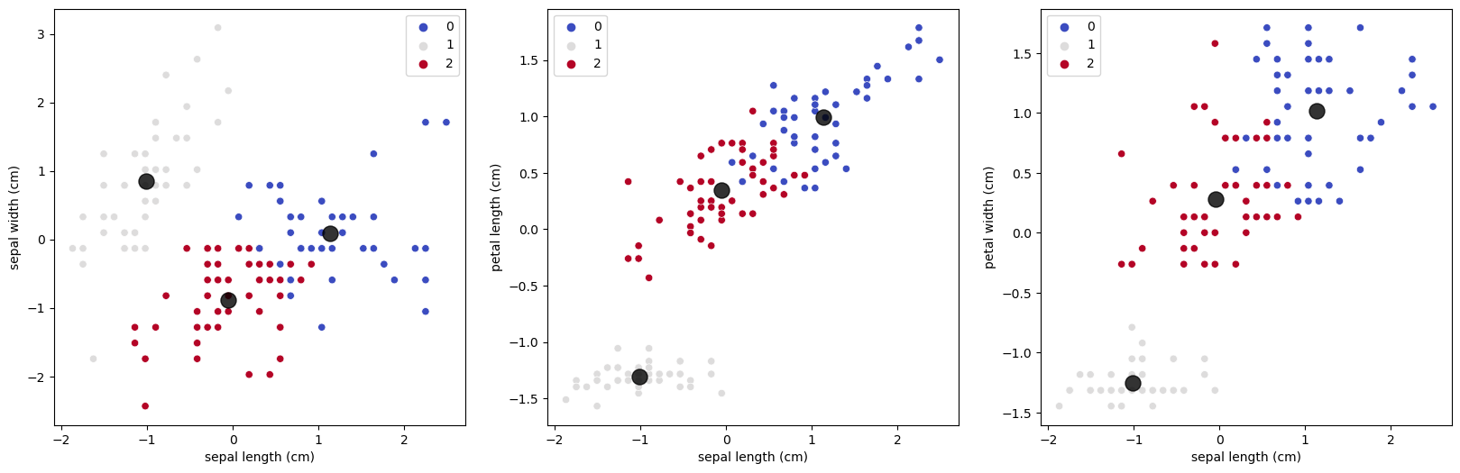 스케일링을 하지 않아도 3가지로 잘 분류된 것 같습니다.